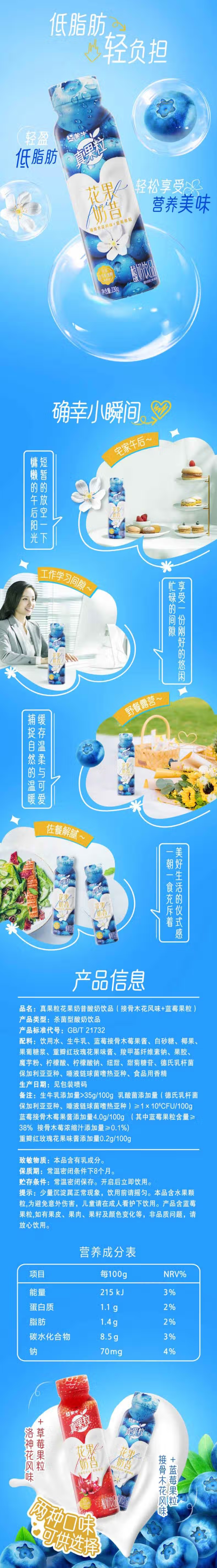 蒙牛真果粒花果奶昔接骨木花蓝莓风味饮品